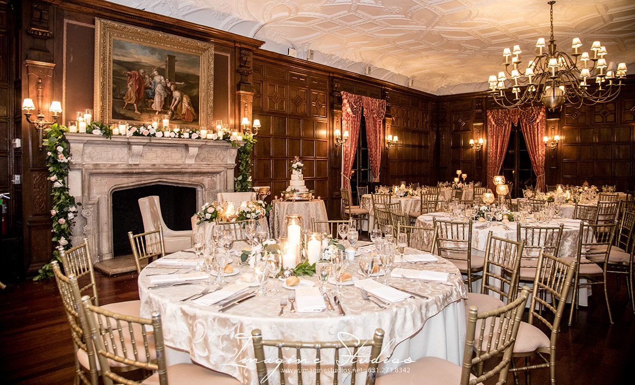 Our team has designed a blend of our Traditional and Mansion Style affairs. Instantaneously, following cocktail hour, dinner will take place on one end of the mansion and characteristically lasts about 1.5 hours at which time, all the formalities you have spent precious time fashioning will commence. Subsequent to dinner, you and your guests can dance the night away in either the elegant ballroom or the dining room, and enjoy our European dessert café.
